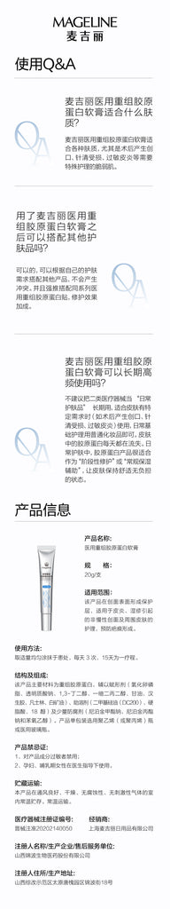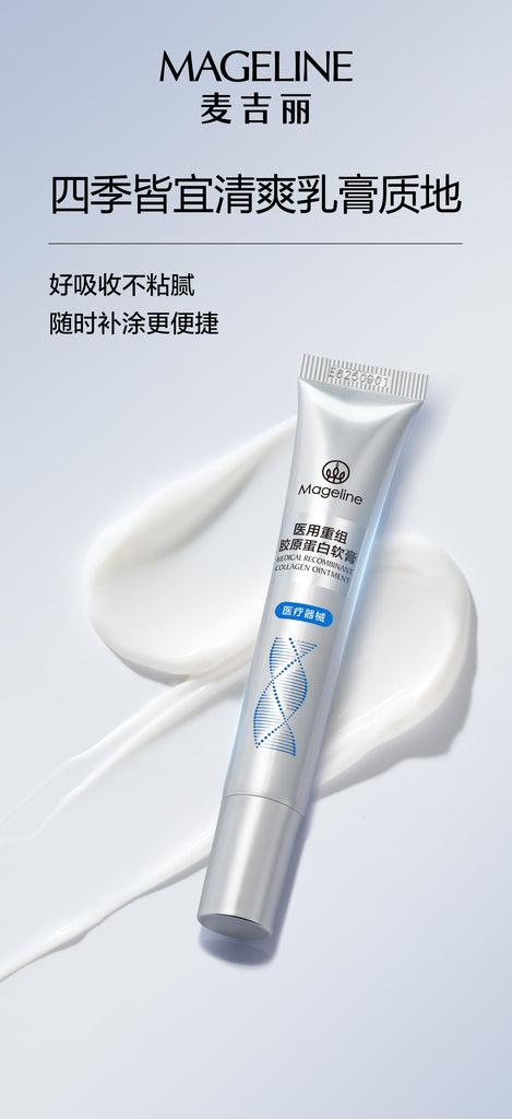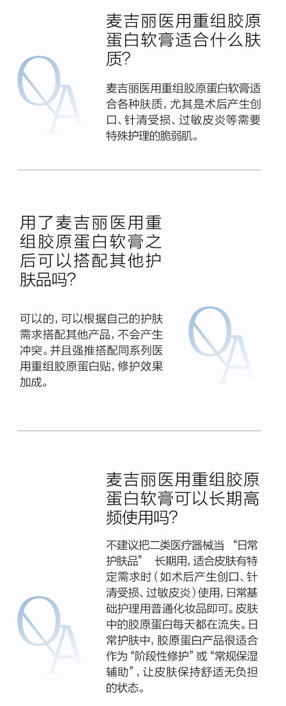 麦吉丽医用重组胶原蛋白软膏适合各种肤质,尤其是术后产生创口、针清受损、过敏皮炎等需要特殊护理的脆弱肌。